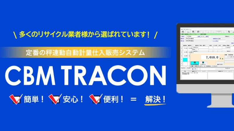 創業以来、一貫して企業の機械化と事務の合理化に取り組む中で、数々のシステムを開発してきた。中でも、秤連動自動仕入販売システム「CBM TRACON」は、計量伝票や日報・月報の作成を円滑にサポートすることで、原料業者の事務処理の効率化を実現。顧客ニーズに応える製品として、製鋼・製紙・産廃・砂利砕石業などの各分野から高い評価を受け、全国約1,100拠点での導入実績を持つ。