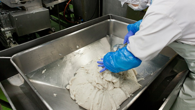 主力商品の蒲鉾では、仙崎地方発祥の「焼き抜き」製法、生の魚肉すり身や地下水といった素材、細やかな擂潰(らいかい)作業、美しい成型など、様々なこだわりを持って商品づくりを行う。伝統の味を守りつつ、新商品の研究・開発も積極的に手がけており、ひとくちサイズのかまぼこ「ころん」や炊き込みご飯の素などを開発している。
