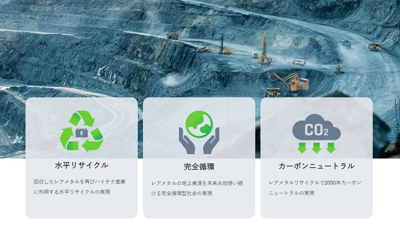 脱炭素社会の実現に不可欠なレアメタル資源の将来にわたる安定供給に貢献すべく、革新的な溶媒抽出技術「エマルションフロー」の世界的普及および「エマルションフロー」技術の本格的事業化へと積極的に取り組むことで、「地上資源を未来永劫使い続ける完全循環型経済」の実現を目指していく。